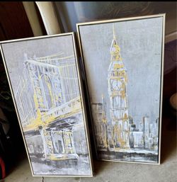 2 Framed Canvas Cityscapes w/Gold Foils$15Columbus, IN