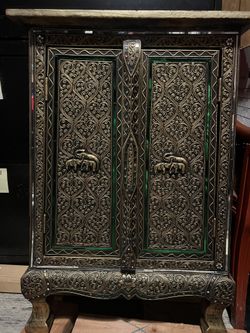 Antique Glass Mosaic Double Door Hand Carved Wooden Cabinet$130Huntington, NY