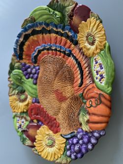 VINTAGE Large Thanksgiving Turkey Platter - Colorful Hand Painted 19” x 14 1/2” - Sapota Ceramic$25Cold Spring Harbor, NY
