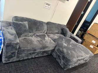 BRAND NEW FIRM PRICE Corduroy dark gray couch with right facing chaise display$599Corona, CA