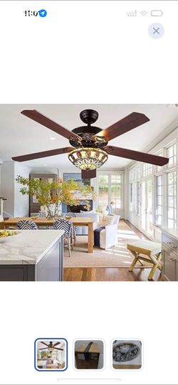 52 Inch Antique Ceiling Fan with Tiffany Light, Remote Control & Decorative Black Finish - Elegant T$125Parma, OH