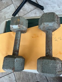 Pair 15lb Hex Cast Iron Dumbbells Dumbell Weight Weightlifting Workout Home Gym π$25Plant City, FL