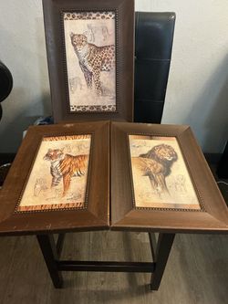 Lot of 3 vintage wood J Gibson Lion & Leopard& Tiger Safari Framed Wall Artπ$50Plant City, FL