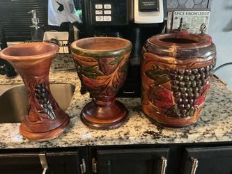 Vintage Caribbean Hand Carved Wood Vase, 3-Piece Folk Art beautiful 31 1/4 inches tall please see pictures π$175Plant City, FL