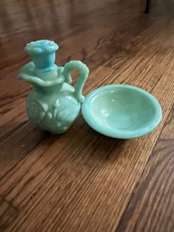 1978 Vintage Avon Bath Oil Decanter Jadeite Blue Green Slag Milk Glass Embossed$20Whittier, CA