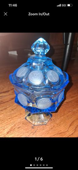 Vintage Fostoria Light Ice Blue Coin Covered Pedestal Glass Candy Dish Co$50Whittier, CA