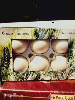 Box of 6 Visions by Bollywood Ribbon White Glass Ornaments Decoration