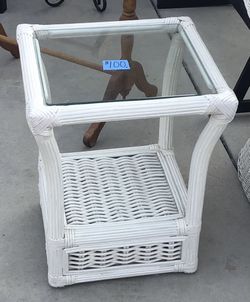 White Wicker End Table with Glass Top$100Palm Springs, CA