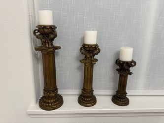 Candle Holders Set Of 3 With Candles Elephant Carvings $90Folsom, CA