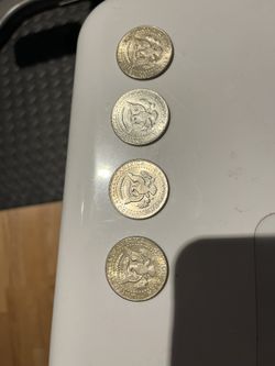 four 1964 kennedy half dollars . two good circulated condition . other two with interesting contrast . 90% silver $80Dallas, GA