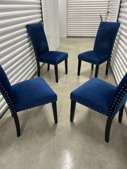 Modern Blue Velvet Upholstered Chair – ($75 Each Or Set Of 4 For $250)$250Stickney, IL