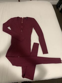 Fashion Nova Burgundy Ribbed Long Sleeve Jumpsuit Zipper Front$30Los Angeles, CA