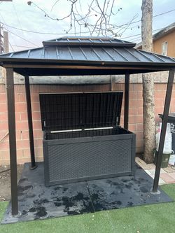 Hardtop Grill Gazebo for Patio Grey Permanent Metal Roof Outside Sun Shade Outdoor BBQ Canopy$500Santa Ana, CA