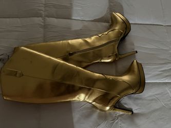 Thalia Sodi Trixi Platform Stiletto Gold Matte Heeled Boots $80Riverside, CA
