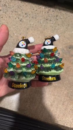 PITTSBURGH STEELERS CHRISTMAS ORNAMENT LED LIGHT UP TREE 4IN NFL FOOTBALL SET OF 2$20West Covina, CA
