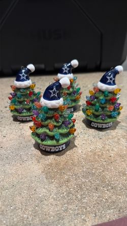 DALLAS COWBOYS CHRISTMAS ORNAMENT LIGHT UO LED 4 IN CERAMIC TREE NFL FOOTBALL NEW CONDITION EVERGREEN SET OF 4$40West Covina, CA