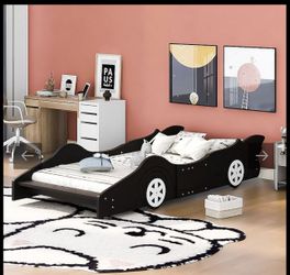 ModernLuxe Twin Size Race CarShaped Platform Bed with WheelsBlack$150Laveen Village, AZ