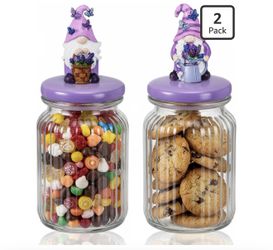 New - 2 Pcs Spring Gnomes Candy Jars Purple Lavender Gnomes Glass Cookie Jars Clear Candy Food Storage$19Brooklyn, NY