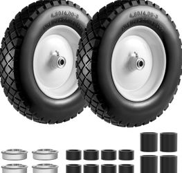 4.80/4.00-8" Tire and Wheel Flat Free 2 PCS, 16" Solid Wheelbarrow Tire with 5/8" & 3/4" Bearings,3"-7" Centered Hub, 14"-16" Universal Fit for Hand T$44Avondale, AZ
