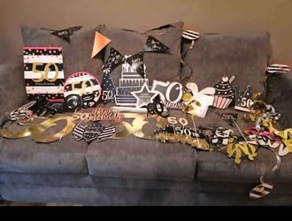 Assorted 50th Birthday Decorations Outdoor Signs w/stakes, Banners, and other Decor. Pet and Smoke Free Home$10Ronkonkoma, NY