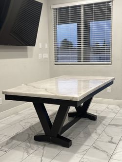 6 seating Real Marble Dining Table – Solid Stone Top, Black V-Base $350Las Vegas, NV
