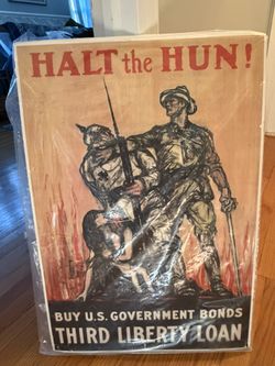 World War I U.S. War Bonds Poster 20 By 30 Halt The Hun $125Paterson, NJ
