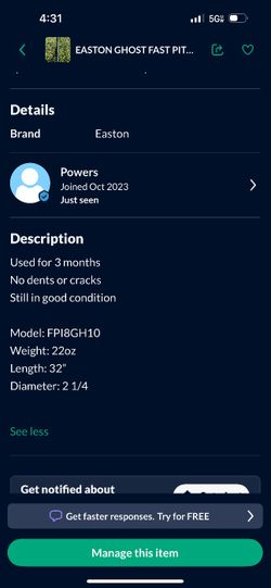 Easton Ghost Fast Pitch Bat$140Upland, CA