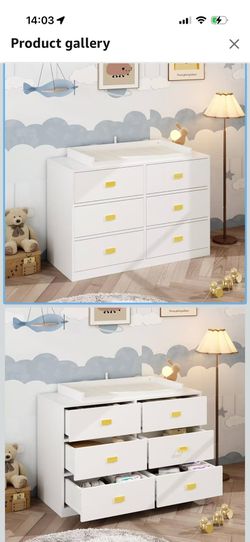 6 Drawer Baby Dresser, Nursery Dresser with Changing Topper, Long Cabinet for Infant Cloth Organize, Changing Station for Nursery and Kids Bedroom Sto$150Trenton, NJ