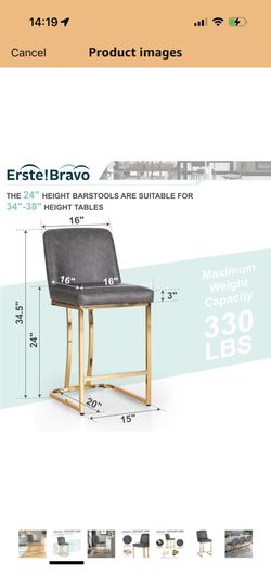 Grey Gold Counter Height Bar Stool with Back for Kitchen Counter 24 Inch Modern Barstool Faux Leather Upholstered Farmhouse Bar Chair Island Stool Sup$150Trenton, NJ