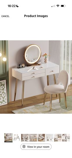 KDCAS Vanity Desk with Mirror and Lights| 39" Beige Modern Makeup Vanity Set with Drawers & Adjustable Chair| White and Gold Dressing Table for Small $100Springfield, PA
