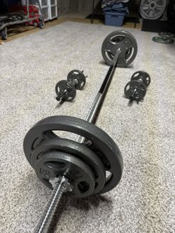 105lbs barbell set with Two dumbbells with collars and clips$180Miller Place, NY