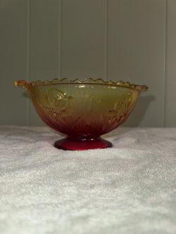 Jeanette Amberina Pressed Red Iris Floral Glass Bowl$10Norfolk, VA