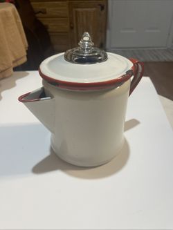 Vintage White Enamelware Glass Top Coffee Pot Percolator Red Trim$19Morrisville, NC