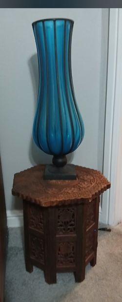 Vintage Blue Hand Blown Glass With Wrought Iron Base Dating Mid 20th century ,+ Carved & Inlaid Accent Table Base & Top Fitting Detailed Leaf Decorati$1,500Rowlett, TX