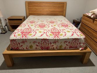 Crate & Barrel Sierra Queen Size bed and nightstand made of repurposed teak. $450Tracy, CA