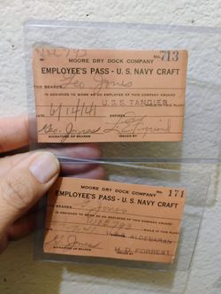 Rare 1940s WW2 Ship Worker Pass Oakland CA One Ship Tangier Was At Pearl Harbor$20Poway, CA