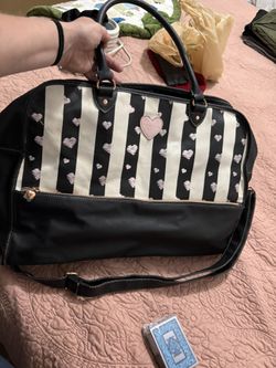 SoldBetsey Johnson Black White Striped Patent Zip Around Wallet Wristlet$30Houston, TX