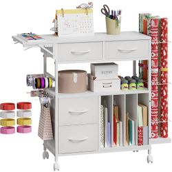 Rolling Gift Wrap Storage Cart w/ Foldable Table – 3 Tier Organizer (White)$60Edinburg, TX