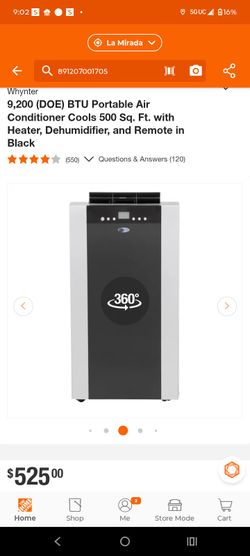 Aire acondicionado portátil de 9200 (DOE) BTU que enfría 46,5 m² con calentador, deshumidificador y control remoto$200Whittier, CA