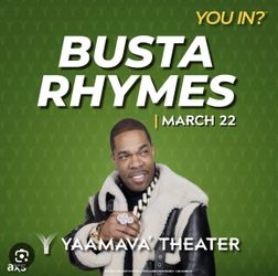 2 Tickets To Busta Rhymes At Yamava 3/22 Section 103$200Rancho Cucamonga, CA