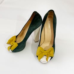 Pier Lucci Genuine Suede Green White And Yellow High Heel Shoes$25New York, NY