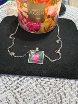 Silver Square Necklace With Domed Glass Wile Featuring A Photo Of Pink Rose $20St. Louis, MO