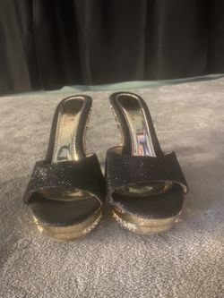 Glamorous black and gold platform heels with vintage design #Depop #partyshoes$15Anaheim, CA