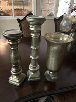 Title: Mercury Glass Candle Holders & Hurricane Vase – Set of $80Santa Ana, CA