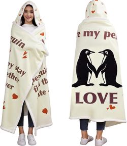 Anniversary Romantic Blanket Hoodie – Penguin Love Design (Soft Sherpa Fleece)$18Columbus, OH