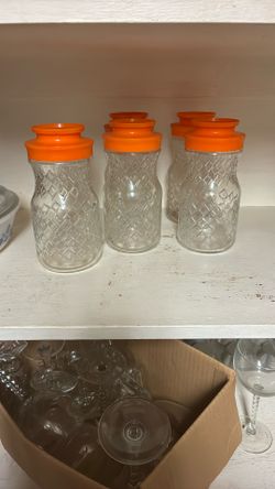 vintage Anchor Hocking Diamond Pattern clear glass jar canister with an orange$20Bear Creek Village, PA