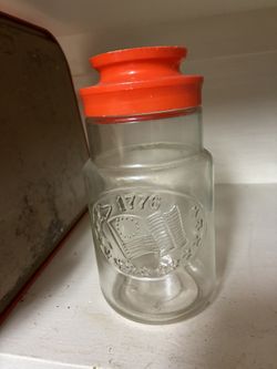 vintage Anchor Hocking 1776 Bicentennial glass jar with a red plastic lid. $10Bear Creek Village, PA