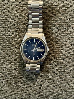This is a vintage Seiko 5 Automatic men's watch featuring a blue dial and stainless steel bracelet. $50Corp Christi, TX