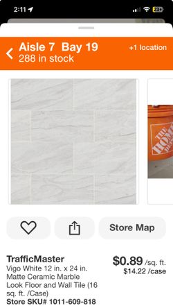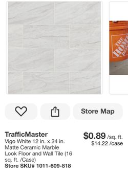 TrafficMaster Vigo White 12 in. x 24 in. Matte Ceramic Marble Look Floor and Wall Tile (16 sq. ft. /Case) $299Chino, CA