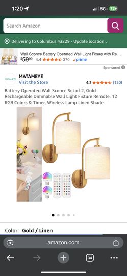 Set of 2 Gold Wall Sconces – Battery Operated, Dimmable, Remote Control (Open Box / Never Used)$45Allentown, PA
